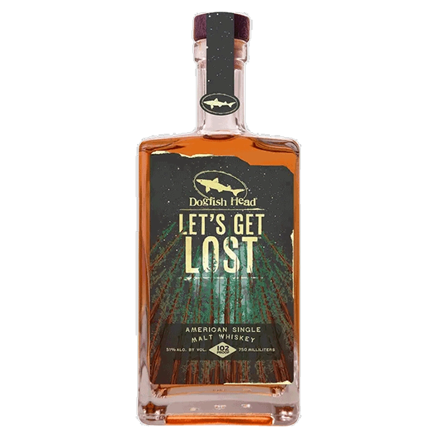Dogfish Head's Let's Get Lost is a captivating American Single Malt, born from the same innovative spirit as their celebrated ales. Brewed with a four-grain blend featuring a high ratio of applewood-smoked malt (a clever nod to smoke without peat's intensity), and fermented with their signature ale yeast, this whiskey offers a unique twist. Aged over three years in charred oak, it delivers a layered profile of cereal sweetness, orchard fruit, and a smoky depth reminiscent of mesquite. Expect a long, warming finish with hints of chocolate and coffee, making "Let's Get Lost" a complex and approachable journey in a glass.