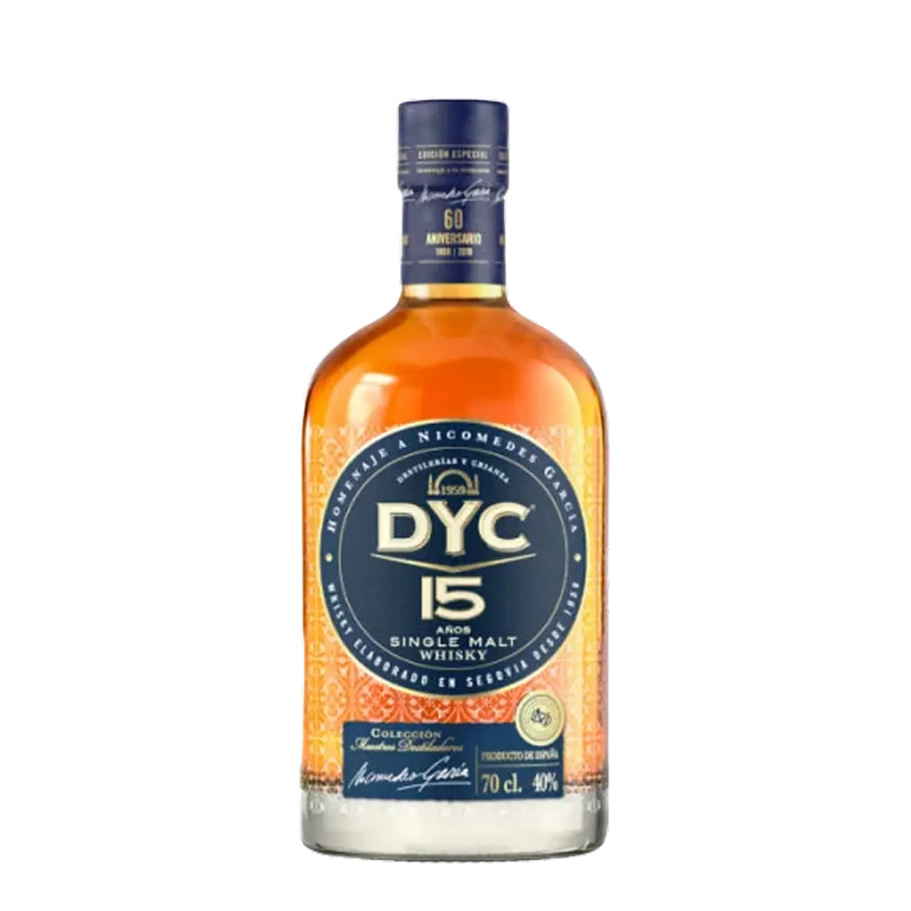 This Spanish whisky is a surprising find! DYC 15 Year Old, a single malt from Destilerías Y Crianza, pours a dram full of sweet syrupy notes. Think canned peaches in heavy syrup and candied orange, balanced with a hint of beeswax and nougat. The taste follows suit, with spun sugar, cream soda, and more of that delicious peach. The finish brings a touch of dryness with oak and baking spices. It's a tasty, well-balanced whisky. It is a faithful replica of a Scottish single malt.