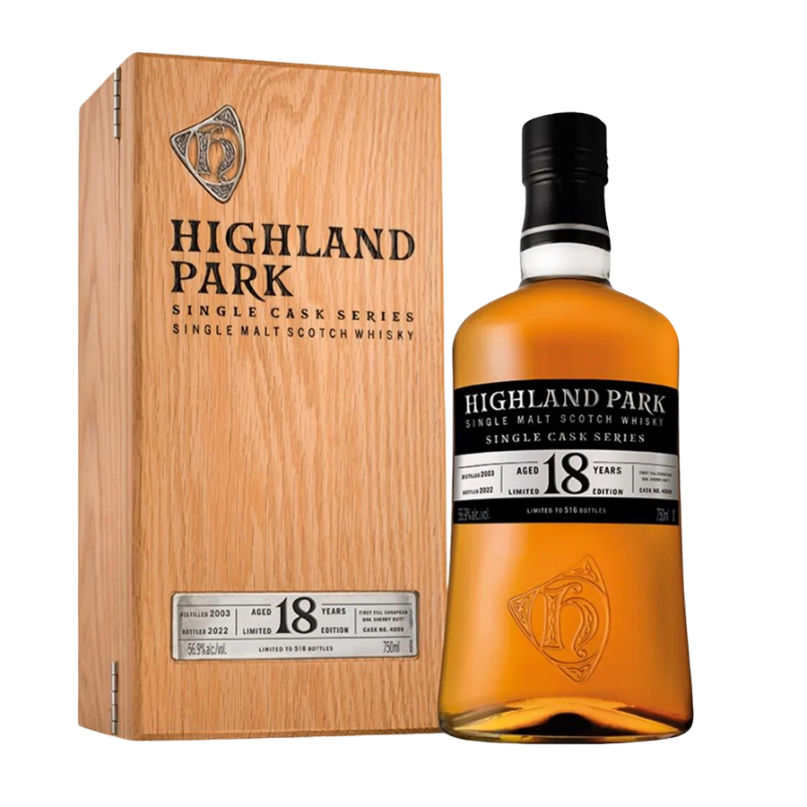 The Highland Park 18 Year Old Single Cask Limited Edition 2022 is a complex dram, bottled at a robust 56.9% ABV. Distilled in 2003 and matured in a first-fill sherry-seasoned European oak butt, this single malt offers aromas of dried dates, figs, and baking spices. Initially smooth, the palate evolves with notes of cherry, oak, and a touch of spice. A limited release of only 524 bottles in California, its deep ruby hue reflects its sherry cask maturation. While some find it subtle at first, patience reveals a rewarding and balanced finish, perfect for those who appreciate depth and character in their whisky. A special occasion dram that balances sweet and spicy notes with a hint of peat.