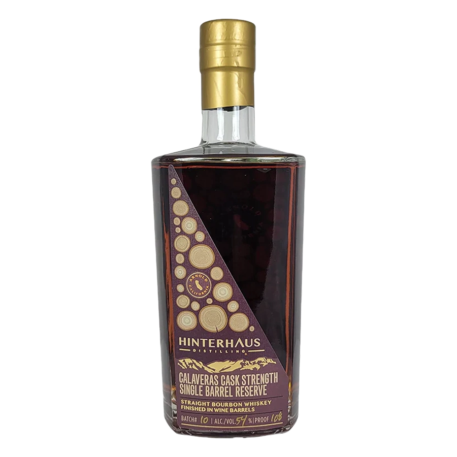 Hinterhaus Calaveras Cask Strength is a special bourbon. They take a single, remarkable barrel of their straight bourbon and give it extra aging at high altitude in the Sierra Nevada. Then, they finish it in Calaveras County wine barrels, which infuses unique flavors from the wine into the whiskey. Bottled at cask strength, unfiltered, and with no added color, each Single Barrel Reserve is a rare find with a concentrated and unrepeatable flavor. If you spot one, grab it!
