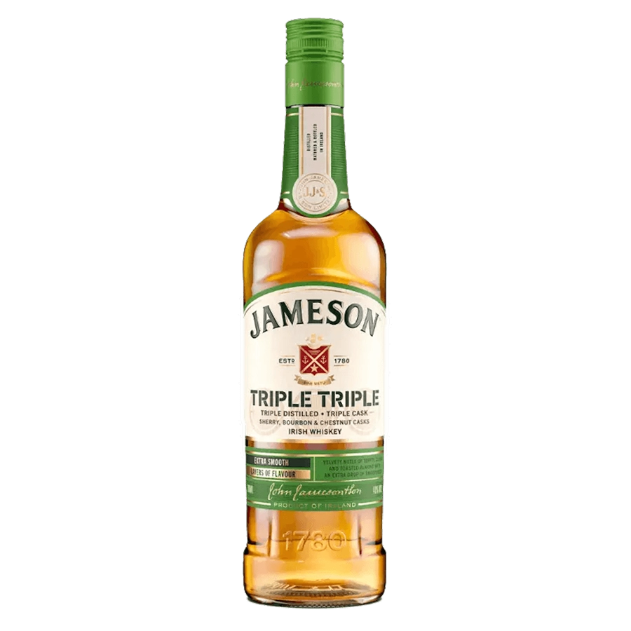 Jameson Triple Triple is a travel retail gem, taking classic Jameson and adding layers of flavor through triple cask maturation. Expect a nose of toffee, vanilla, and subtle orchard fruits, leading to a palate that's luscious and textured with fudge, creamy vanilla, and gentle wood spices. The finish is lingering, with fruits and spices fading to leave a balanced oak and chestnut influence. It's a smooth, versatile dram, perfect neat, on the rocks, or in a cocktail, offering a step up in complexity from the standard Jameson.