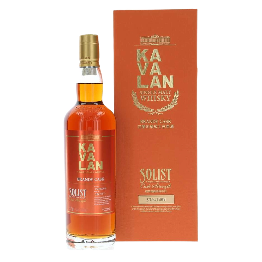 Kavalan Solist Brandy Cask is a trip to Taiwan in a glass! This single malt, aged in brandy casks, throws intense aromas like honeyed nuts and tropical fruit, hinting at the warmth within. The palate delivers a fruity punch โ grilled pineapple, dark chocolate, maybe a bit of prune. Some find a slight bitter edge, like charred orange, which a drop of water can soften, letting the sweeter notes shine. It finishes long with caramel and dark chocolate, a lingering reminder of this unique whisky's complex character. It's definitely a flavorful departure from the norm!