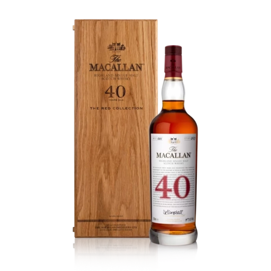 The Macallan 40 Year Old Red Collection is a stunning single malt Scotch, a testament to time and tradition. Aged for four decades in sherry-seasoned oak, this 2023 release offers a decadent experience. Expect aromas of orange, fig, and dark chocolate alongside antique oak. The palate delivers ginger, nutmeg, and creamy vanilla notes. A whisper of woodsmoke lingers on the long finish. Housed in a beautiful oak presentation box, it's a true collector's item and a taste of Macallan's rich history.