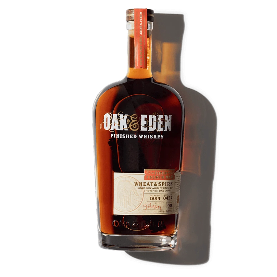 Oak & Eden's Wheat & Spire offers a unique take on wheated bourbon. Starting with a mashbill high in wheat, it's aged in American oak before a French oak spire is added to the bottle. This innovative "bottle finishing" imparts peppery, sweet notes alongside butterscotch and subtle floral spices. Expect a creamy texture with evolving flavors, from vanilla custard to cinnamon and licorice, rounded out by a finish of wheat grain, vanilla, and a touch of oak and leather. It's a constantly evolving pour.