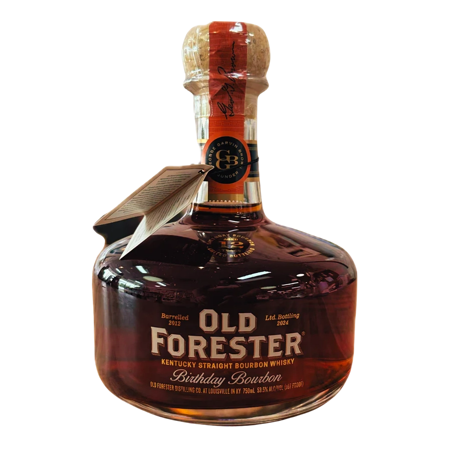 Old Forester Birthday Bourbon is back, celebrating the brand's founder with a 12-year-old expression bottled at a robust 107 proof – the highest proof yet for this annual release. Expect a rich, complex pour. The nose bursts with dark caramel, vanilla, and toasted oak, with hints of dried fruit and baking spices. On the palate, find toffee, cinnamon, roasted nuts, and a notable oak presence. The finish is long and warming, with brown sugar, clove, and lingering oak spice. While opinions vary, the 2024 Birthday Bourbon delivers a solid, well-aged experience that's sure to please fans of the series.