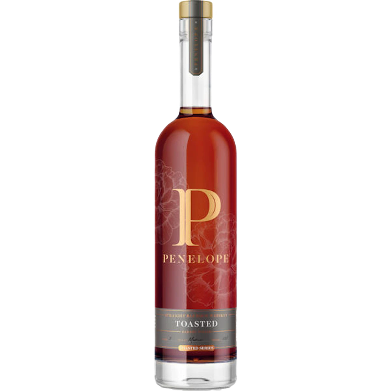 Penelope Toasted Bourbon is a 100-proof, non-chill filtered bourbon finished in heavily toasted new American oak. It offers a sweet, pastry-like aroma leading to caramel, brown sugar, vanilla, and dried cherry notes. The unique toasted barrel finish imparts a savory roasted marshmallow flavor and gentle spice, creating a deep and memorable character.
