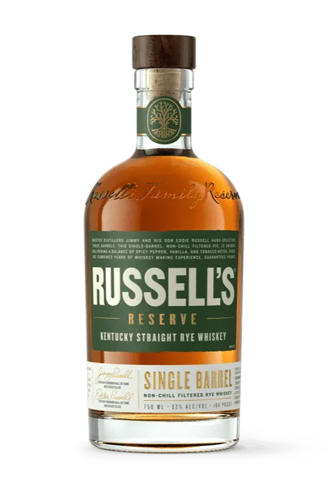 Russell's Reserve Single Barrel Rye is a true gem in the world of American rye whiskeys. This Kentucky straight rye whiskey captivates the senses with its alluring aroma – a delightful blend of lemon, vanilla, and spicy oak, complemented by hints of orange peel and ginger. The flavor profile is equally enticing, offering a harmonious combination of pepper, vanilla, and tobacco notes, with a delightful touch of pear drops and peppercorn. What sets this whiskey apart is its unique single barrel expression. Each bottle is individually bottled from a hand-selected barrel, ensuring a truly one-of-a-kind experience. Bottled at 104 proof and non-chill filtered, this whiskey retains its rich, full-bodied character and stunning color derived from aging in No. 4 alligator char barrels. Whether enjoyed neat or on the rocks, Russell's Reserve Single Barrel Rye promises an unforgettable journey of flavors.
