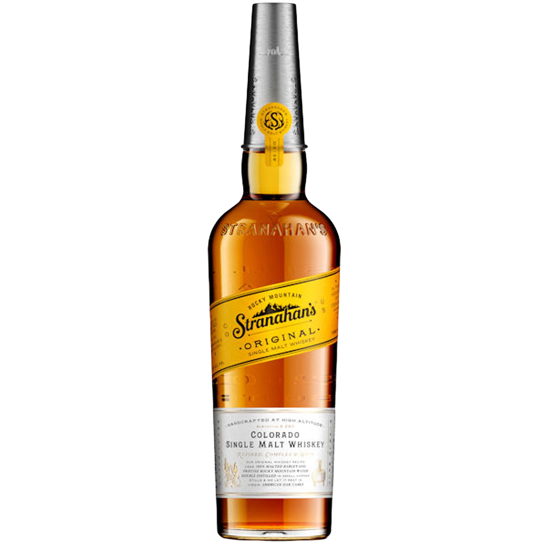 Stranahan's Original is a bold American single malt, aged at least 4 years in new American oak, giving it a burnt amber color. Crafted with local grains and Rocky Mountain spring water, each bottle is a blend of barrels aged 4-7 years. Expect a rich aroma of caramel, vanilla, and leather. The taste is a sweet dance of cinnamon-butter, chocolate, and spiced pear, with a creamy texture. The finish brings light fruitiness with a strong oak presence, tobacco, and aged leather. It's a flavorful, distinctive whiskey that showcases Stranahan's unique style.